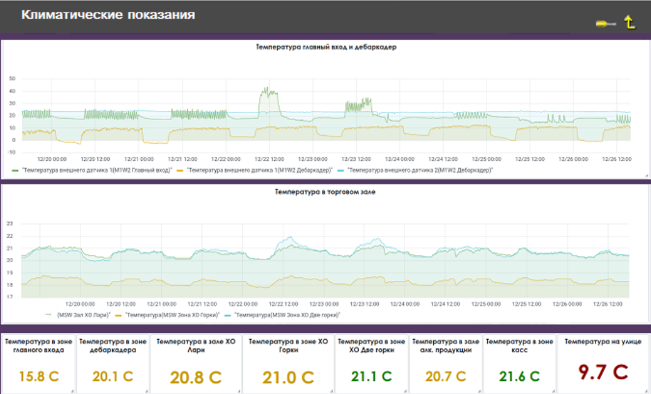 Для каждого параметра системы ведется контроль за мгновенными, суточными расходами, текущими показаниями